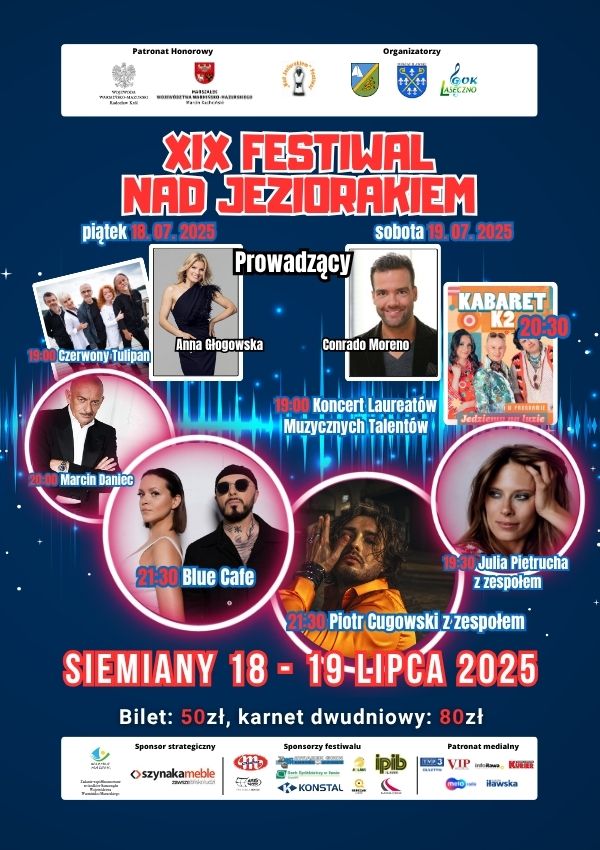 Zapraszamy na XIX edycję wyjątkowego festiwalu muzycznego "Nad Jeziorakiem" w malowniczych Siemianach! Dwa wieczory pełne muzyki, kabaretu i niezapomnianej atmosfery!