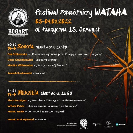 Zapraszamy na V edycje Festiwalu Podróżniczego Wataha, na podróże po najdalszych zakątkach Ziemi, przygody i przemyślenia jednych z najciekawszych i najbardziej inspirujących osób z polskiej sceny podróżniczej.