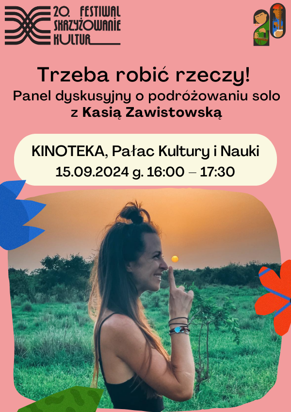 W ramach jubileuszowej, 20 edycji Festiwalu Skrzyżowanie Kultur zapraszamy na inspirujące spotkanie z Kasią Zawistowską, podróżniczką, która postawiła nogę w 42 państwach na 5 kontynentach i… eksploruje dalej! Większość swoich podróży odbyła solo, poznając nowych ludzi i odkrywając nowe kultury. Na Instagramie prowadzi konto @trzeba_robic_rzeczy, gdzie dzieli się tipami na budżetowe rozwiązania w podróży i nie tylko.