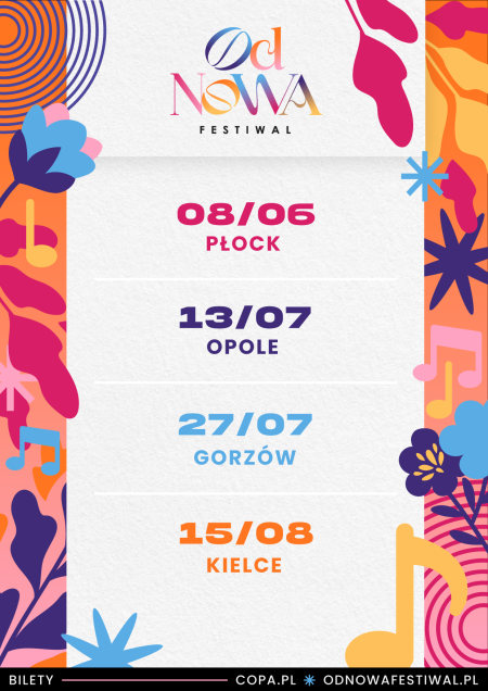 OD NOWA – festiwal, który w piękne niedzielne popołudnie zabierze Was w kilkugodzinną muzyczną podróż... Muzyka, potężne nagłośnienie, efekty i niesamowity klimat pełnowymiarowych koncertów!