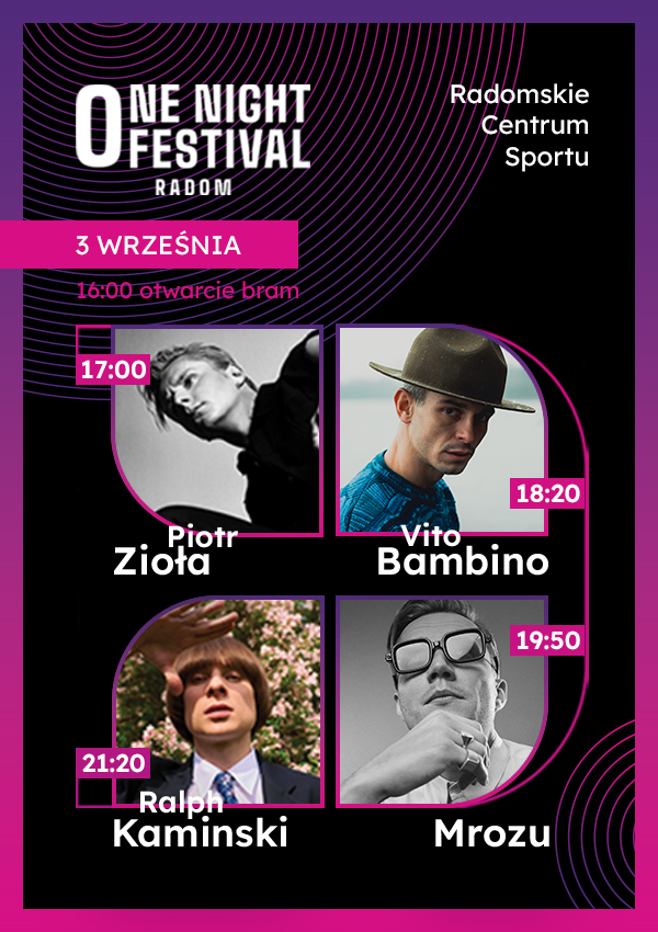 🔥🔥Ideą tego wydarzenia jest kreowanie wyjątkowych muzycznych emocji i tworzenie niezwykłego klimatu do odpoczynku i integracji mieszkańców całego regionu. Festiwal skierowany jest do miłośników szalonej zabawy przy dźwiękach ulubionych artystów. Jest nam niezmiernie miło ogłosić, że w tym roku radomska scena ugości najjaśniejsze muzyczne osobistości: Piotr Zioła, Vito Bambino, Mrozu, Ralph Kaminski‼️Widzimy się na koncercie‼️🎟️