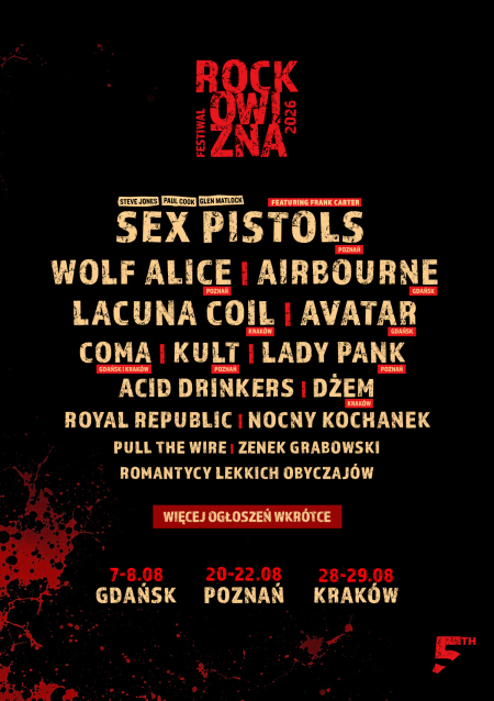 ROCKOWIZNA 2026 – MOCNE ROCKOWE GRANIE I NIEZAPOMNIANY KLIMAT Zapraszamy na 5-edycję Festiwalu Rockowizna, która już w sierpniu 2026 odbędzie się w Gdańsku, Poznaniu i Krakowie. Największa, rockowa trasa festiwalowa w Polsce ponownie połączy pokolenia.