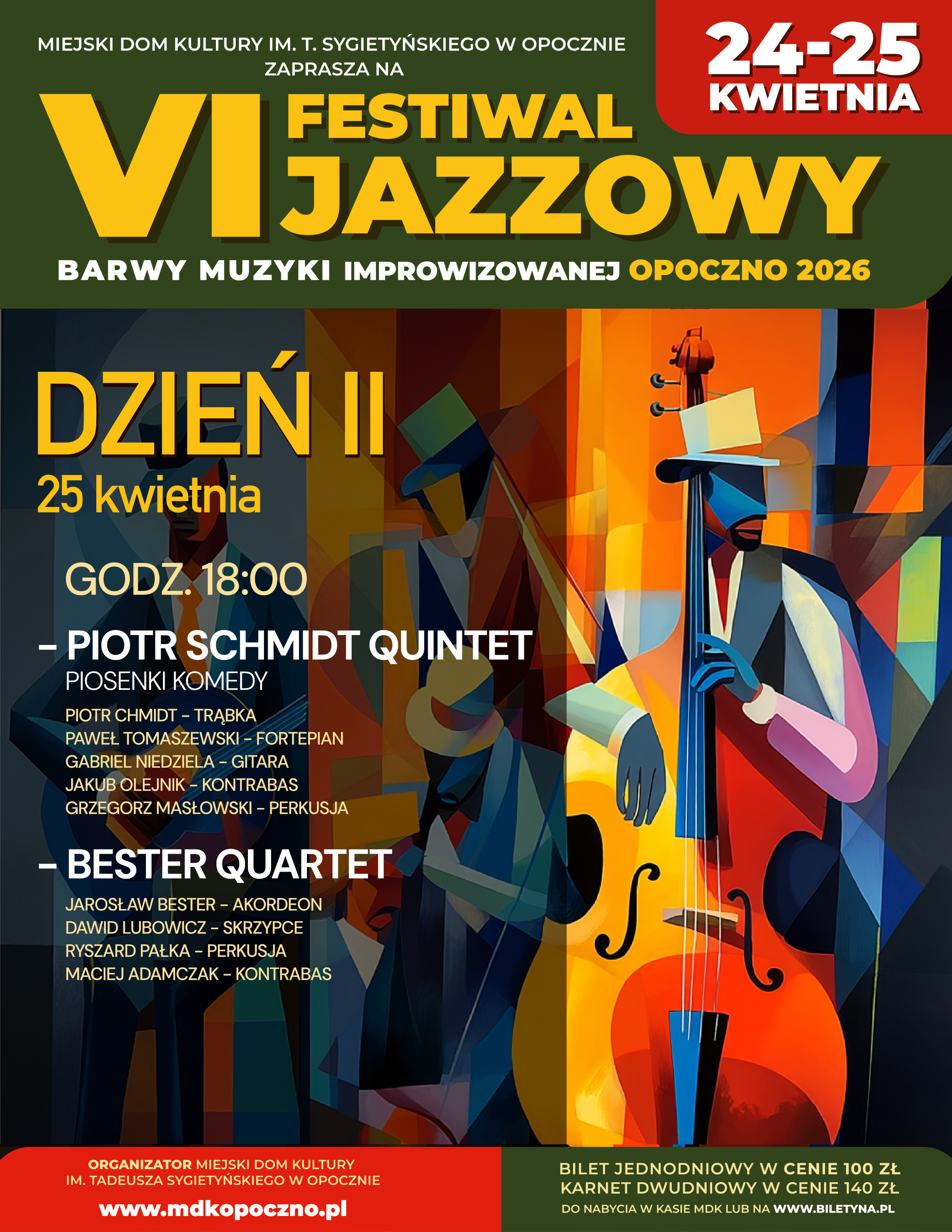 Po koncertach zapraszamy na Jam Session (godz. 20:30) w Musique Cafe w budynku MDK – wspólne improwizacje muzyków i wyjątkowa festiwalowa atmosfera.