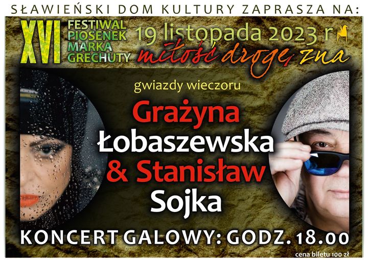 Sławieński Dom Kultury gorąco zaprasza Państwa na XVI Festiwalu Piosenki Marka Grechuty „Miłość drogę zna ”, który odbędzie się 19 listopada 2023r.o godzinie 18.00