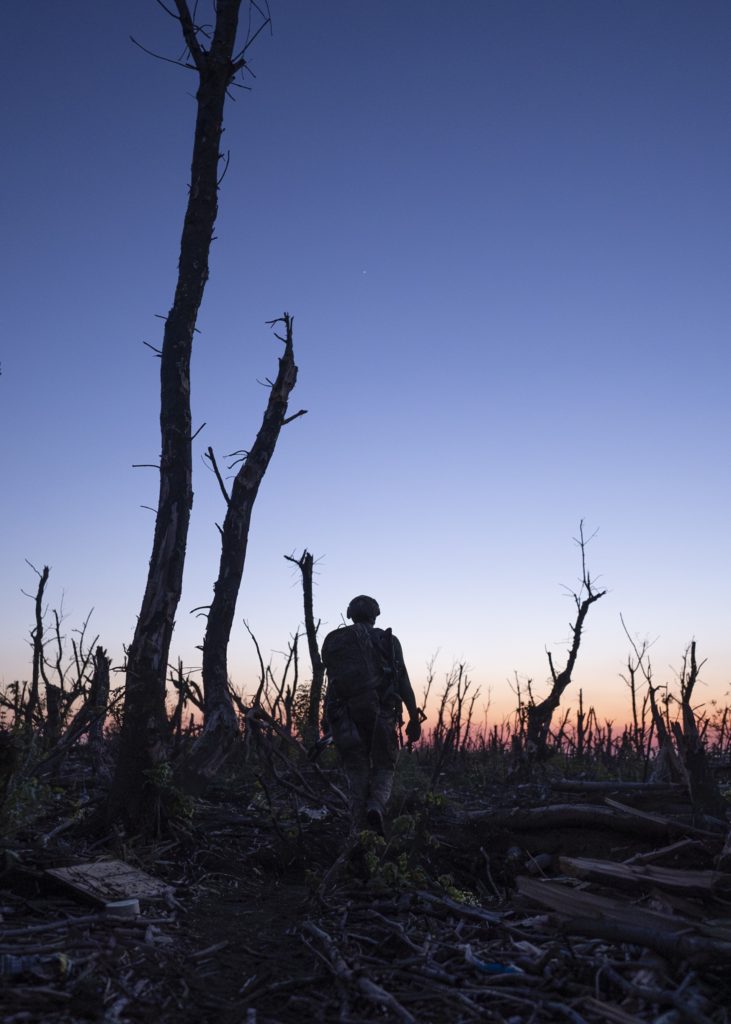 Dystans dwóch kilometrów można przejechać samochodem w dwie minuty, a przebiec w osiem. Pocisk przelatuje ten dystans w 35 sekund. Lato 2023 roku. Wojska ukraińskie zaczynają kontrofensywę na Wschodzie kraju, gdzie mała Andrijiwka, właściwie już zniszczona, ma strategiczne położenie. Sierżant Fiedia otrzymuje flagę, którą ma zatknąć nad zdobytą miejscowością. Jedyna droga do tego miejsca biegnie przez wąski pas lasu, a właściwie przez jego pozostałości. Reszta okolicy jest odkrytą, zaminowaną równiną. "To jakby wylądować na planecie i wszystko wokół próbuje cię zabić" - tłumaczy żołnierz.