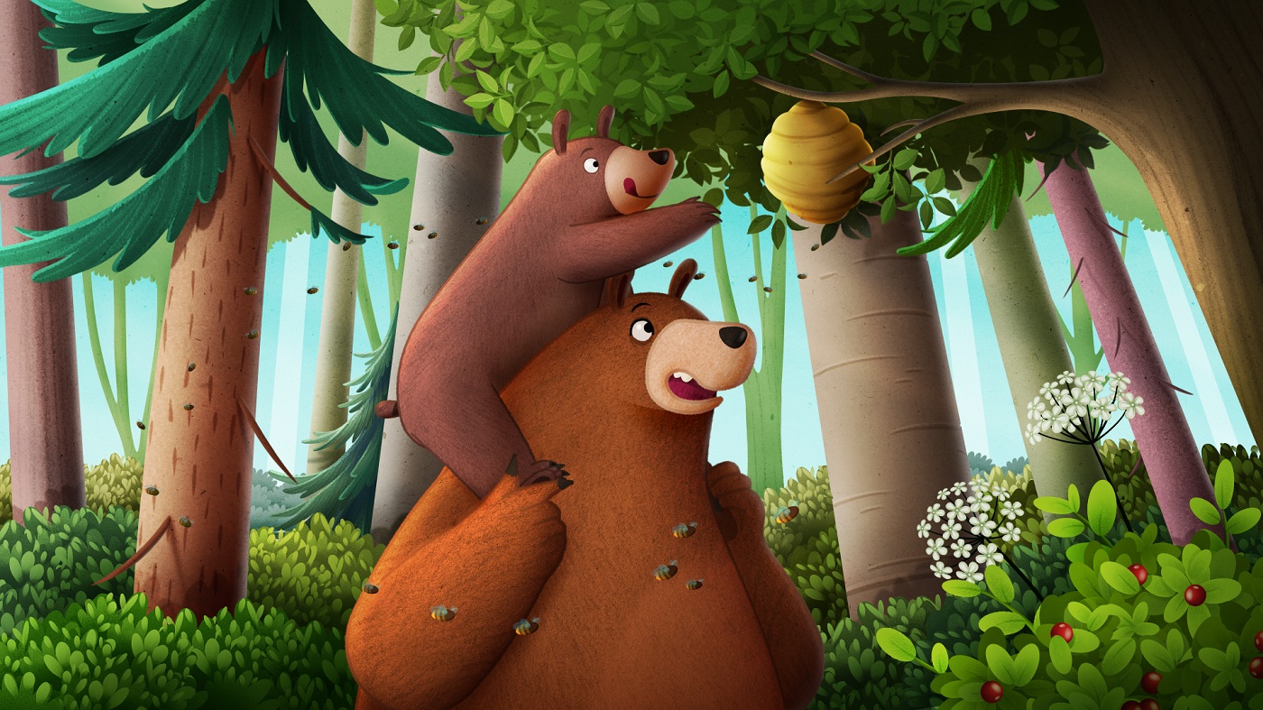 Mały Miś marzy o urodzinowym miodowym torcie. Niestety, Tatuś Miś nie może spełnić życzenia – wszystkie ule w lesie są już puste! Trzeba wyruszyć do Złotej Krainy, aby zdobyć najważniejszy składnik ciasta.