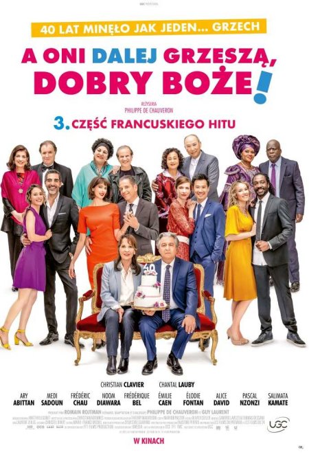 40 lat minęło jak jeden… grzech? Państwo Verneuil mają co świętować – taki staż małżeński to nie przelewki i, zdaniem ich córek, świetna okazja, by zorganizować huczną imprezę niespodziankę. Żeby było jeszcze weselej, na przyjęcie z różnych zakątków świata przyjeżdżają rodzice Rachida, Davida, Chao i Charles’a. Jeśli państwo Verneuil myśleli, że czterech nietuzinkowych zięciów to już za dużo, to się dopiero zdziwią... Miej ich wszystkich w opiece, dobry Boże!