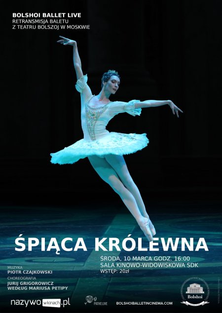 Baletowa wersja baśni Charles’a Perraulta o księżniczce Aurorze, która zasnęła na sto lat, ukłuwszy się podczas swoich szesnastych urodzin w palec zaczarowanym przez złą wróżkę wrzecionem, to klasyk nad klasykami. Spektakl nie tylko opowiada historię śpiącej królewny, ale jest przede wszystkim pełnym uroku, barw i tanecznej wirtuozerii baletowym koncertem, wymagającym zaangażowania olbrzymiego zespołu, w tym uczniów szkoły baletowej, a także kilkudziesięciu solistów. „Śpiąca królewna” to także przedstawienie o niezwykłej urodzie plastycznej, przenoszące nas w czasy carskiej Rosji i bogatych wystawień w carskich teatrach. Oryginalną choreografię Petipy odtworzył, zarazem opracowując ją na nowo, od lat związany z moskiewskim zespołem Jurij Grigorowicz. Zgodnie z tradycją wykonawczą, według której złej i szpetnej postaci nie może wykonywać balerina, w postać złej wróżki Carabosse wciela się mężczyzna.