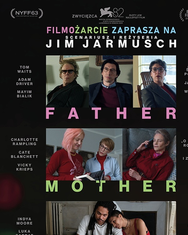 „FATHER MOTHER SISTER BROTHER" to zwycięzca ostatniego festiwalu w Wenecji i najlepszy od lat film Jima Jarmuscha, twórcy „Patersona" i „Broken Flowers". Pełen błyskotliwych obserwacji precyzyjnie skomponowany tryptyk filmowy o relacjach rodzinnych i o tym, co sprawia, że się od siebie oddalamy. Każdy z trzech rozdziałów rozgrywa się współcześnie, w innym kraju: FATHER – w północno-wschodnich Stanach Zjednoczonych, MOTHER – w Dublinie, a SISTER BROTHER – w Paryżu. Film Jarmuscha stanowi zbiór subtelnych, pełnych humoru, ale i nut melancholii portretów ludzkich charakterów. W rolach głównych m.in. Cate Blanchett, Adam Driver, Tom Waits, Vicky Krieps i Charlotte Rampling.