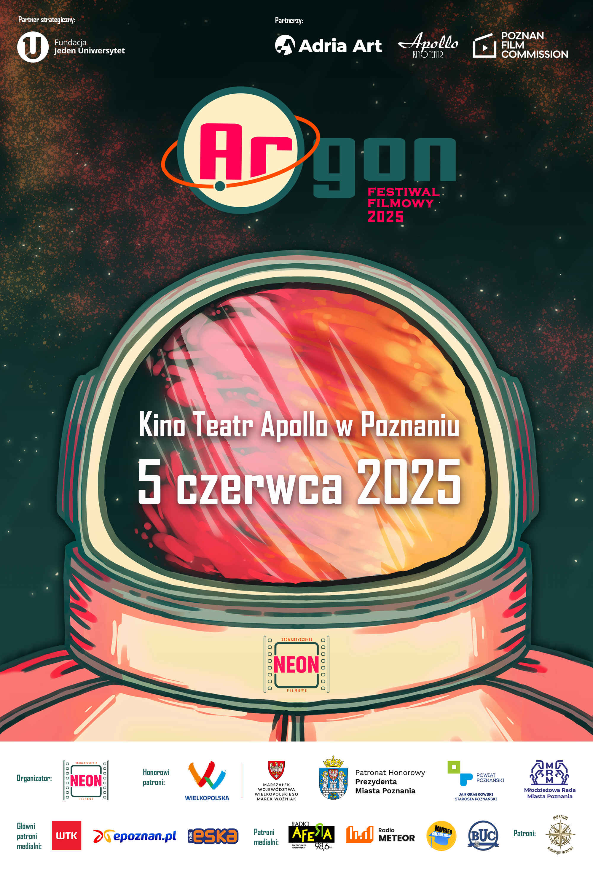 W samym sercu miasta, na styku obrazu i dźwięku, zapraszamy na FESTIWAL FILMOWY ARGON 2025 - multidyscyplinarne wydarzenie organizowane przez Stowarzyszenie Filmowe Neon, które wykracza poza granice klasycznego seansu filmowego.