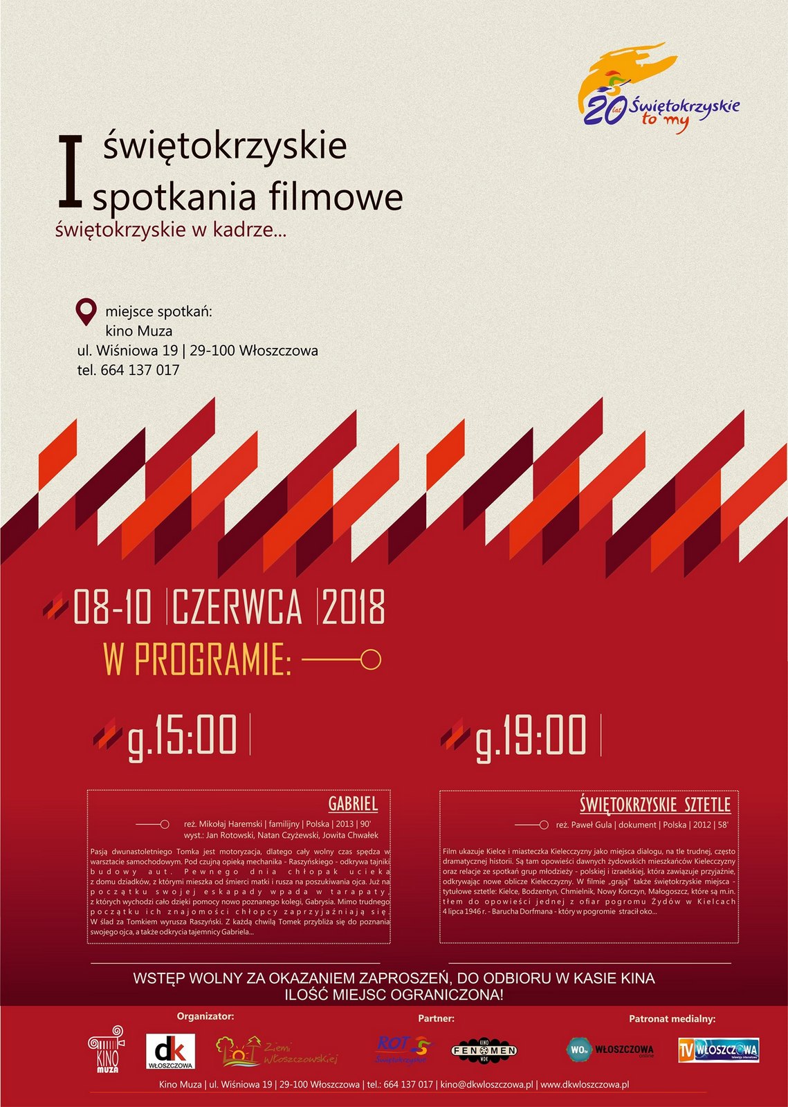 Świętokrzyskie Spotkania Filmowe", to projekt kinowy z okazji jubileuszu 20 - lecia Województwa Świętokrzyskiego.