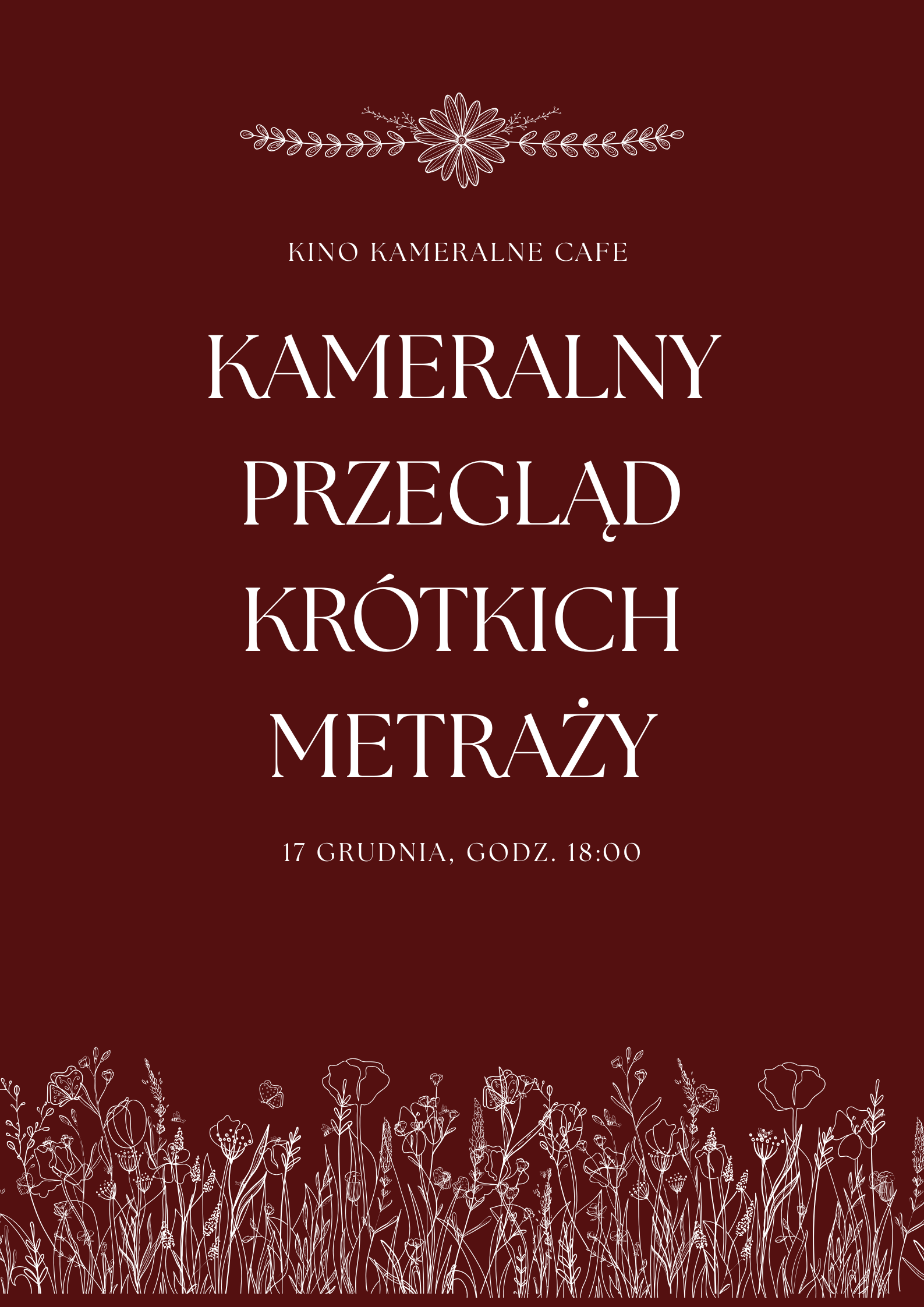 Kino Kameralne Cafe zaprasza na pierwszą edycję Kameralnego Przeglądu Krótkich Metraży. Wierzymy, że w kinach powinno być więcej przestrzeni dla filmów krótkometrażowych, dlatego jakiś czas temu ogłosiliśmy nabór otwarty dla takich produkcji. Z ponad 40 zgłoszeń wybraliśmy 9 najciekawszych według nas tytułów: