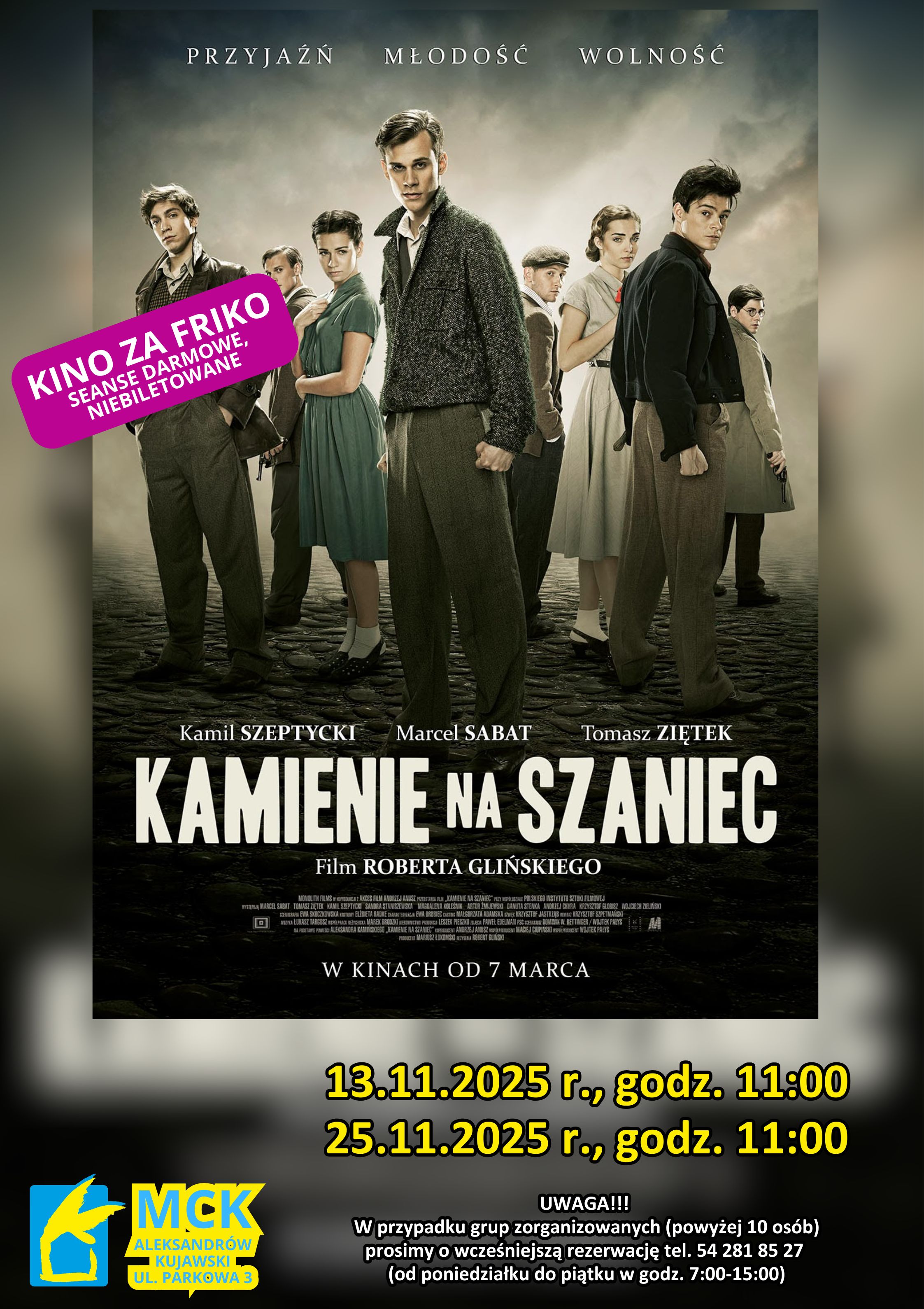 Kamienie na szaniec - Kino za friko! (seanse darmowe, niebiletowane)