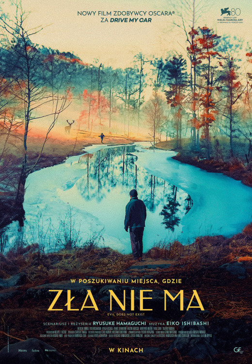 „Zła nie ma”, najnowsze dzieło twórcy „Drive My Car”, to zdobywca pięciu nagród na festiwalu w Wenecji, na czele z Wielką Nagrodą Jury i nagrodą FIPRESCI. Ryûsuke Hamaguchi portretuje w nim Japonię nieznaną – zanurzoną w świecie zachwycającej, dzikiej przyrody, kultywującą odchodzące w przeszłość tradycje. W tym kojącym, wyciszającym filmie, wydobywającym piękno ukryte w prostocie, baśń o potędze natury organicznie łączy się z dramatem. Sygnały, które zapowiadają naruszenie kruchej równowagi pomiędzy trwaniem i zmianą, budzą tęsknotę za miejscem, w którym „zła nie ma”.