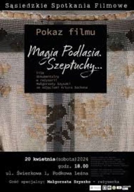 Film „Magia Podlasia-Szeptuchy” to opowieść o szeptuchach i szeptunach, jako reprezentantach medycyny ludowej, którzy kontynuują tradycję zamów przekazywaną z pokolenia na pokolenie w podlaskich domach. Opowieść o chorobach ludowych, uzdrowieniach, magii, czarach, a przede wszystkim o ludzkich pragnieniach i oczekiwaniach. W filmie zadajemy pytania, na które szukają odpowiedzi eksperci – antropolodzy, etnografowie, psychoterapeuci oraz mieszkańcy Podlasia. Kim tak naprawdę są szeptunki i szeptuni? Dlaczego w dzisiejszym cywilizowanym świecie nadal sięgamy po metody i środki leczenia ciała i duszy stosowane przez naszych dziadków? Przyjdźcie na seans i spróbujcie razem z nami odnaleźć podpowiedzi.