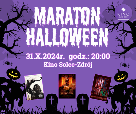 Zapraszamy na Maraton Halloweenowy w Kinie Solec-Zdrój. Czekają na was 3 najnowsze horrory: ,,Nie patrz!", ,,In a violent nature", ,,Bezbożna ostatni egzorcyzm" i porządna dawka strachu!