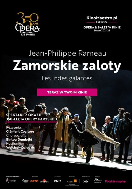 „Zamorskie zaloty” Jeana-Philippe’a Rameau wybrano, by uczcić 350-lecie istnienia Opéra national de Paris, jednej z najznamienitszych instytucji kultury Francji. Przygotowana na tę okazję inscenizacja operowo-baletowego arcydzieła francuskiego kompozytora doby baroku odnosi się do dzisiejszych problemów migracyjnych oraz do obecnych europejskich postaw wobec innych ludów czy obcych przybyszów – a wszystko to w zgodzie z treścią libretta. Dzieło Rameau, którego dosłowny tytuł brzmi: „Zalotne Indie” lub „Pełne wdzięku Indie” („Les Indes galantes”), opowiada o niejednoznacznym poglądzie ówczesnych Europejczyków na zamorskie narody, szczególnie w kwestiach miłosnych. Poprzedzone prologiem cztery części „Zamorskich zalotów” noszą podtytuły: „Wielkoduszny Turek”, „Inkowie z Peru”, „Perskie Święto Kwiatów” i „Dzicy”. Każda z nich opowiada egzotyczną historię miłosną, tragiczną lub komiczną. „Zamorskie zaloty” to wielkie barokowe widowisko, pełne śpiewu i tańca, w nowej odsłonie. Ze względu na trudności wykonawcze oraz na swoje rozmiary dzieło to bardzo rzadko pojawia się na afiszach teatrów operowych świata, dlatego paryski spektakl, prezentowany obecnie w kinach, to wyjątkowa gratka dla melomanów.