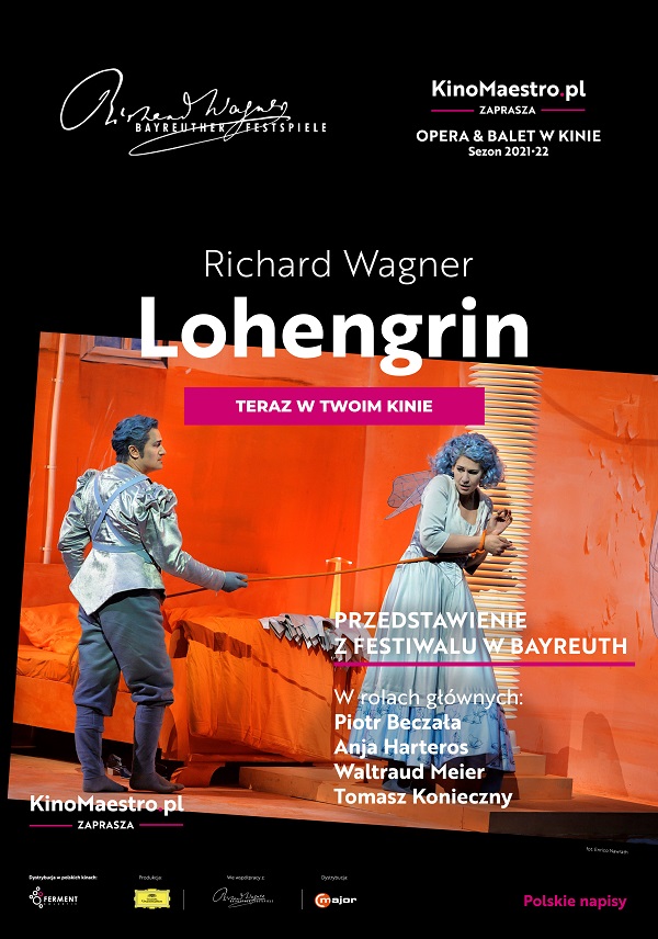 Po raz pierwszy w historii polskie kina pokazują spektakl z Zielonego Wzgórza w Bayreuth – z teatru zbudowanego przez samego kompozytora, który zapragnął mieć miejsce, gdzie będzie mógł odpowiednio prezentować swoje dzieła. Festiwal jest dziś legendą, a prowadzą go potomkowie rodziny Wagnerów. W tym „Lohengrinie” zebrano czwórkę wyjątkowo wybitnych śpiewaków. Niemki Anja Harteros i Waltraud Meier to artystki specjalizujące się w rolach Wagnerowskich, podobnie jak Polak Tomasz Konieczny. Rolę tytułowego tajemniczego rycerza zaśpiewał nasz wybitny tenor Piotr Beczała, gwiazda The Metropolitan Opera. Spektaklem zadyrygował znawca twórczości tego kompozytora – Christian Thielemann. Autorami scenografii i kostiumów są Rosa Loy i Neo Rauch, romantyczno-surrealistyczni malarze ze szkoły lipskiej. Inscenizację stworzył Yuval Sharon, pierwszy amerykański reżyser w historii Bayreuther Festspiele.
