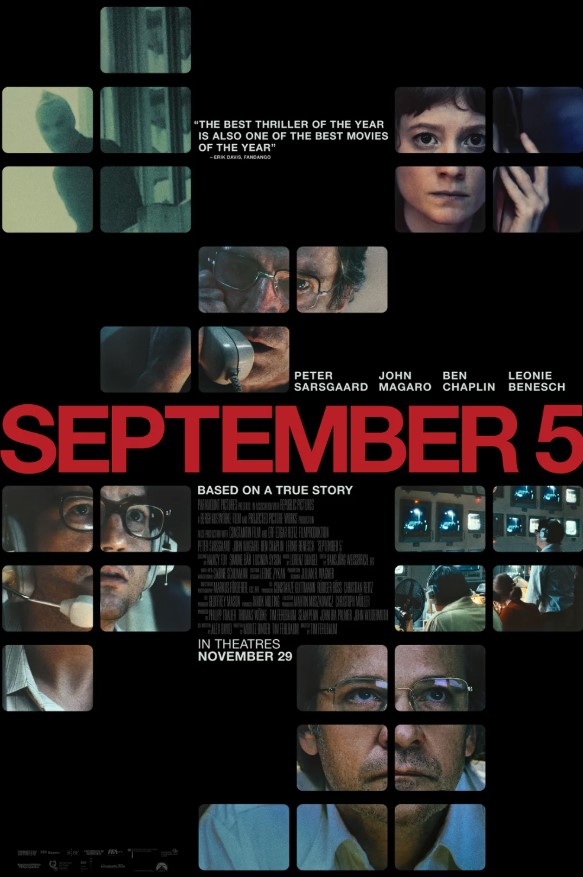 "September 5" ukazuje kulisy kluczowego momentu w historii przekazu medialnego, który na zawsze zmienił sposób nadawania wiadomości na żywo. Akcja filmu rozgrywa się podczas Letnich Igrzysk Olimpijskich w Monachium w 1972 roku i podąża śladem amerykańskiego zespołu transmisyjnego, który błyskawicznie przestawił się z relacjonowania wydarzeń sportowych na rejestrację porwania izraelskich sportowców. Film rzuca nowe światło na tę legendarną relację, którą w tamtym czasie śledziło na żywo około miliarda ludzi na całym świecie.