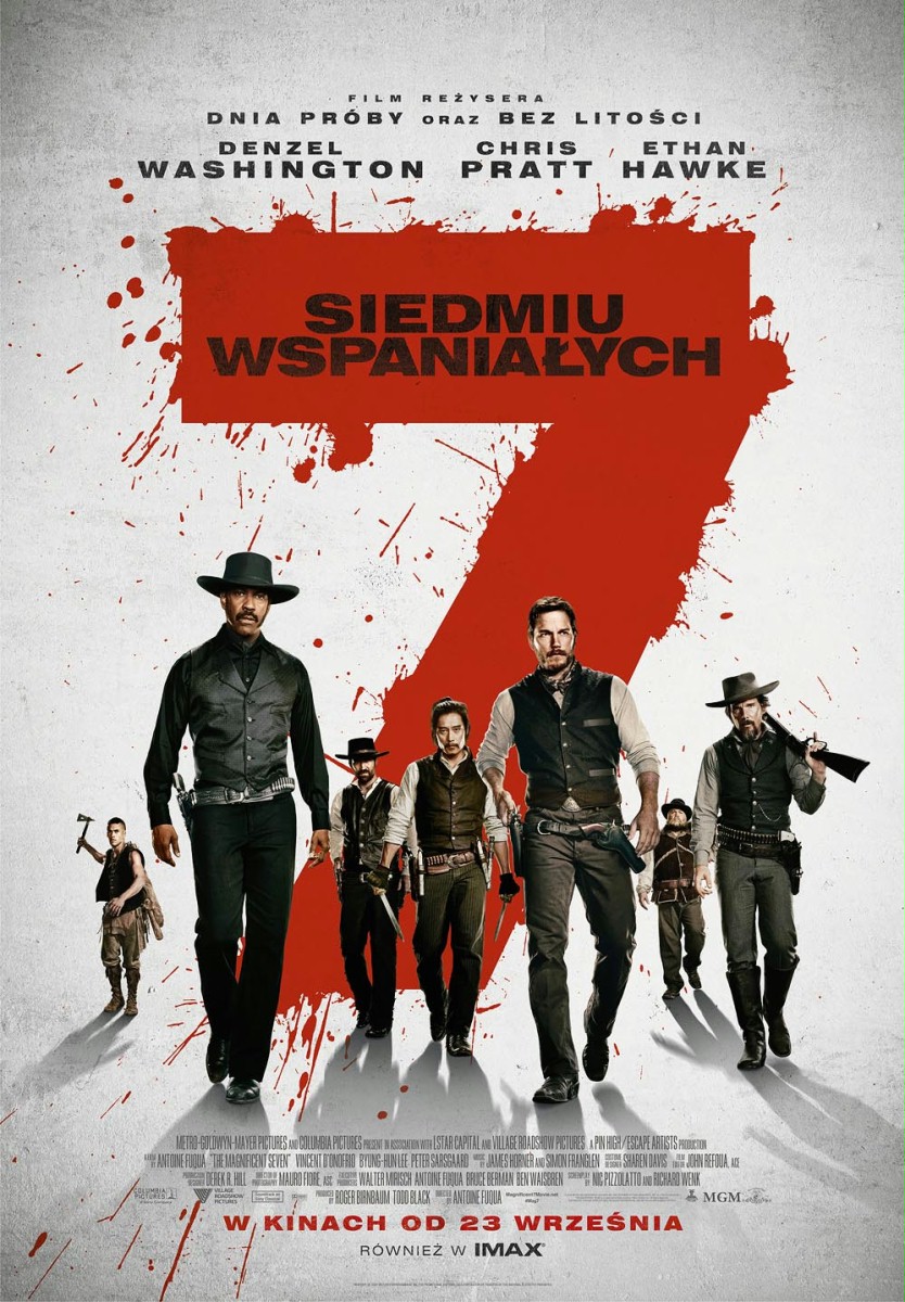 Armia bandytów terroryzuje małą wioskę na pograniczu amerykańsko-meksykańskim. Zrozpaczeni farmerzy zwracają się z prośbą o pomoc do grupy rewolwerowców. Siedmiu najemników postanawia stawić czoło przeważającym siłom przeciwnika, choć wydają się nie mieć szans. Remake legendarnego westernu „Siedmiu wspaniałych”. Film wyreżyserował Antoine Fuqua, twórca takich filmów jak „Dzień próby”, „Bez litości” czy „Do utraty sił”. W obsadzie znalazł się Chris Pratt („Strażnicy galaktyki”, „Jurassic World”), który jest najnowszym objawieniem kina akcji. Partnerują mu m.in. Denzel Washington („Bez litości”) oraz Ethan Hawke („Dzień próby”, „Boyhood”).