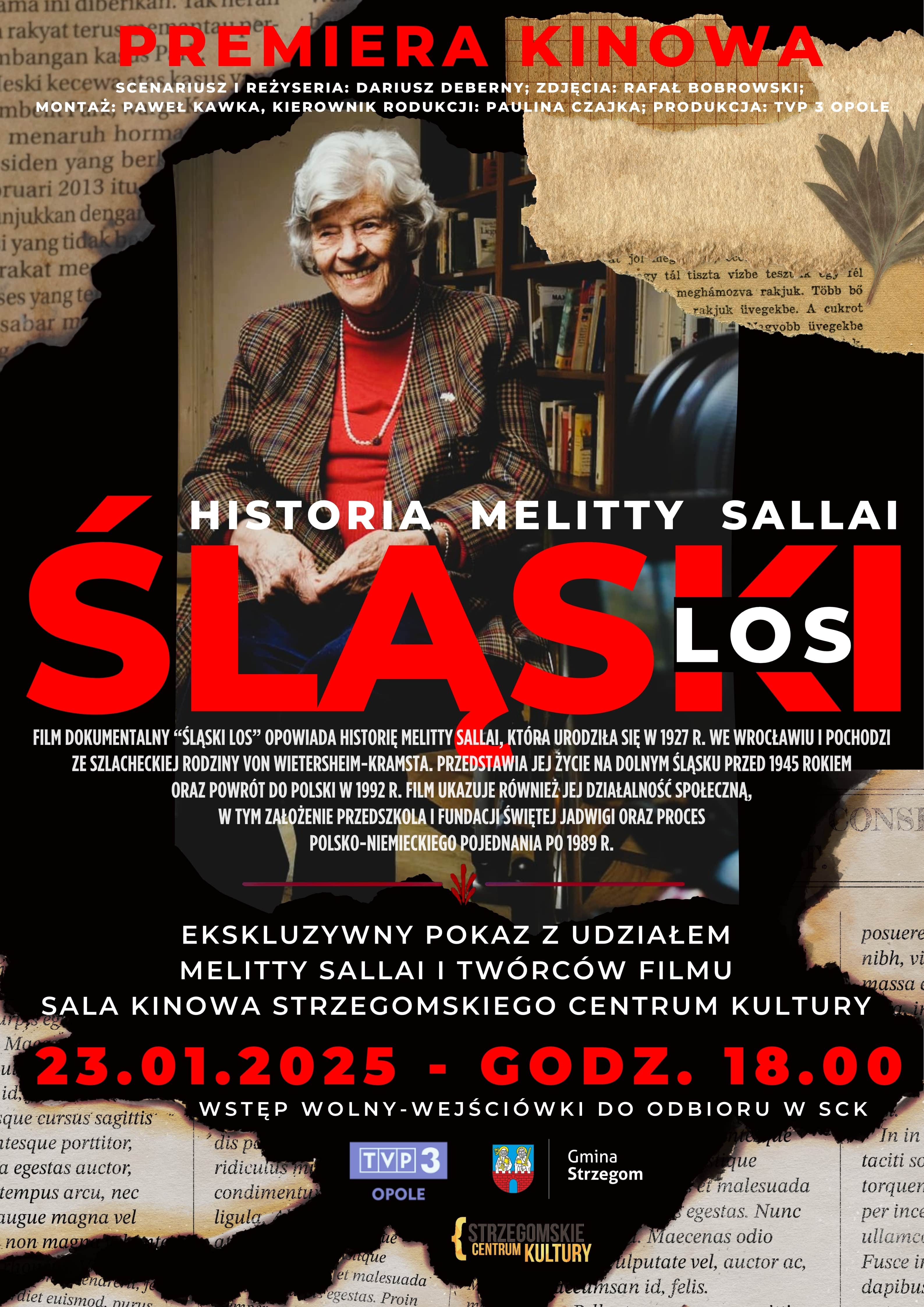 Film dokumentalny "Śląski los" opowiada historię pani Melitty Sallai i jej rodziny. To opowieść o losach jednej z setek tysięcy śląskich rodzin, szlacheckiej rodziny żyjącej na Dolnym Śląsku do 1945 roku. Opowiadamy też historię polsko – niemieckiego pojednania po 1989 roku na podstawie doświadczeń pani Melitty, która powróciłą do domu rodzinnego w 1992 roku i mieszka w nim do dzisiaj. Opowiadamy o przełamywaniu barier między dwoma narodami, o zaufaniu i o obawach Polaków przed „powrotem Niemców” na Śląsk. Pani Melitta opowiada o wartościach, którymi kieruje się w swojej działalności społecznej. W filmie prezentujemy przedszkole, które założyła pani Melitta. Prezentujemy również działalność Fundacji Świętej Jadwigi powołaną do życia przez rodzinę pani Melitty. W filmie wypowiada się również młodzież niemiecka i polska, która uczestniczy w szkolnej wymianie, odbywającej się w dawnym pałacy rodziny Witersheim – Kramsta.