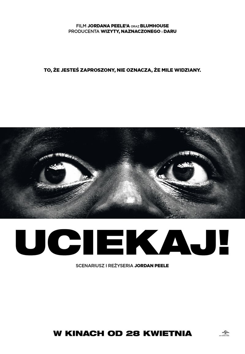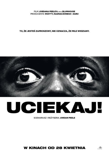 Wstrząsający thriller „Uciekaj!” to historia młodego czarnoskórego chłopaka, Chrisa Washingtona (Daniel Kaluuya), który wybiera się z wizytą do rodziców jego białej dziewczyny – Rose Armitage. Chris szybko orientuje się, że atmosfera w domu Rose jest, mówiąc delikatnie, dziwna. Nie spodziewa się jednak, że powodem zaproszenia nie jest wyłącznie chęć poznania go przez rodziców dziewczyny. Chris wierzy, że nerwowa atmosfera panująca w domu Armitage’ów wynika z przyczyn rasowych. Niedługo jednak odkryje zadziwiającą prawdę. Prawdę, jakiej nie mógł się spodziewać... Magazyn „Variety” nazwał film „bombą krytyki społecznej”, a „The Hollywood Reporter” „jednym z najlepszych thrillerów ostatnich lat”.