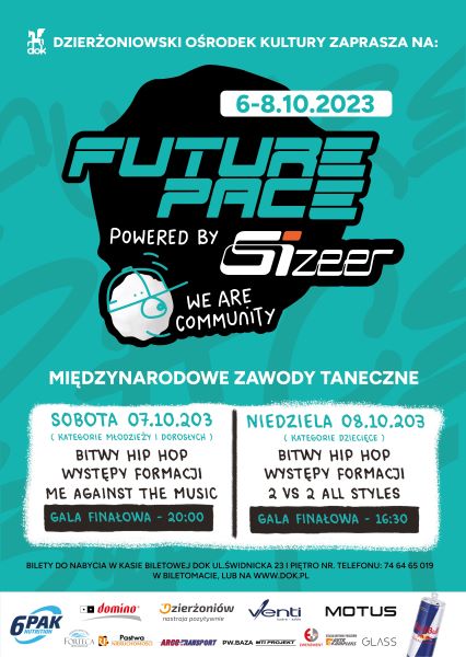 Future Pace Battle to bez wątpienia jedna z największych imprez tanecznych w Polsce oraz Europie. Podczas pierwszej edycji zgromadziła ponad 800 uczestników z całej Polski oraz 10krajów Europy. W tym roku już od 6.10.2023 w Dzierżoniowskim Ośrodku Kultury odbędzie się kolejna edycja zawodów. Nasi goście to najlepsi specjaliści w swojej dziedzinie czyli hip-hop dance w Europie.