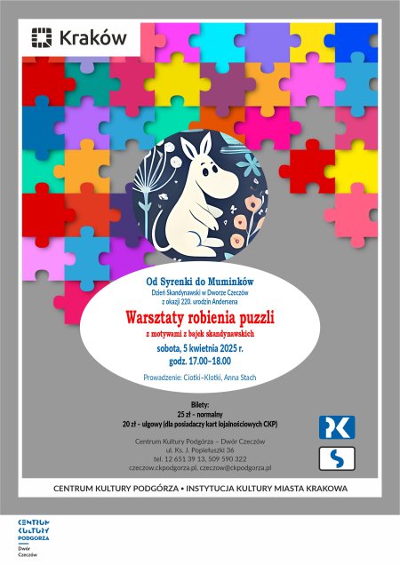 Zapraszamy na warsztaty robienia puzzli z motywami z bajek skandynawskich, które odbędą się w ramach Dnia Skandynawskiego z okazji 220. urodzin Andersena, w sobotę 5 kwietnia 2025 roku o godz. 17.00 w Dworze Czeczów.