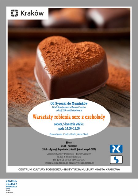 Zapraszamy na warsztaty robienia serc z czekolady, które odbędą się w ramach Dnia Skandynawskiego z okazji 220. urodzin Andersena, w sobotę 5 kwietnia 2025 roku o godz. 14.00 w Dworze Czeczów.