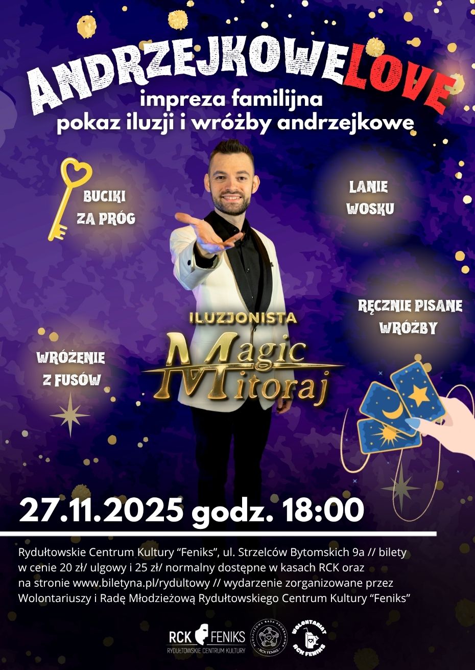 Po pokazie iluzji na gości czekać będą andrzejkowe wróżby przygotowane przez Wolontariuszy i Młodzieżową Radę Programową RCK "Feniks".