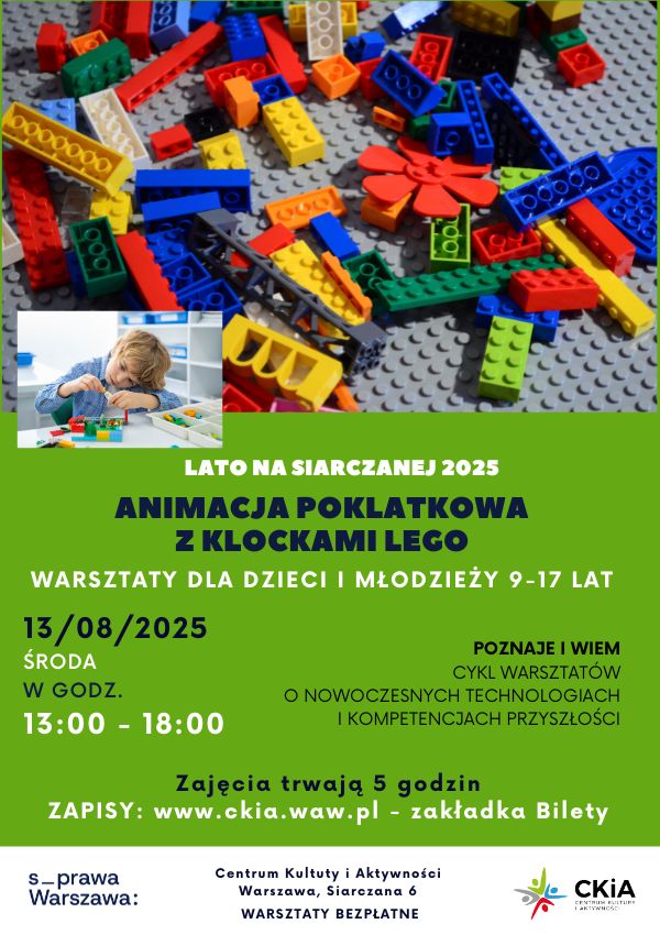 Animacja poklatkowa z klockami lego. Warsztaty dla dzieci i młodzieży w wieku 9-17 lat.