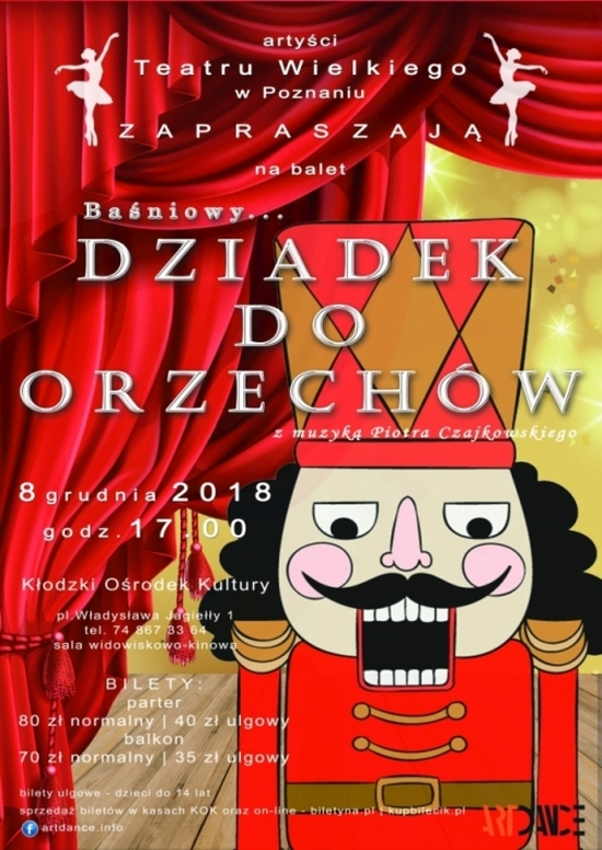 Niezwykła baśniowa opowieść, przepiękna muzyka Piotra Czajkowskiego, barwne stroje, romantyczny balet, bogata scenografia i elementy akrobatyki składają się na wyjątkowy spektakl "Baśniowy dziadek do orzechów". Balet w dwóch aktach to opowieść o Klarze, która w wigilię Bożego Narodzenia znajduje pod choinką drewnianego dziadka do orzechów. Po zapadnięciu zmroku, kiedy dziewczynka zasypia w fotelu, magiczna zabawka zabiera ją w świat magii. Na początku wspólnej przygody, ożywiony dziadek do orzechów toczy bitwę z myszami. Dowodząc żołnierzykami i z pomocą Klary, udaje im się pokonać drużynę gryzoni. Pogrążona we śnie Klara spotyka także Królową Śniegu, która zachwyca akrobacjami na szarfach zawieszonych nad sceną.