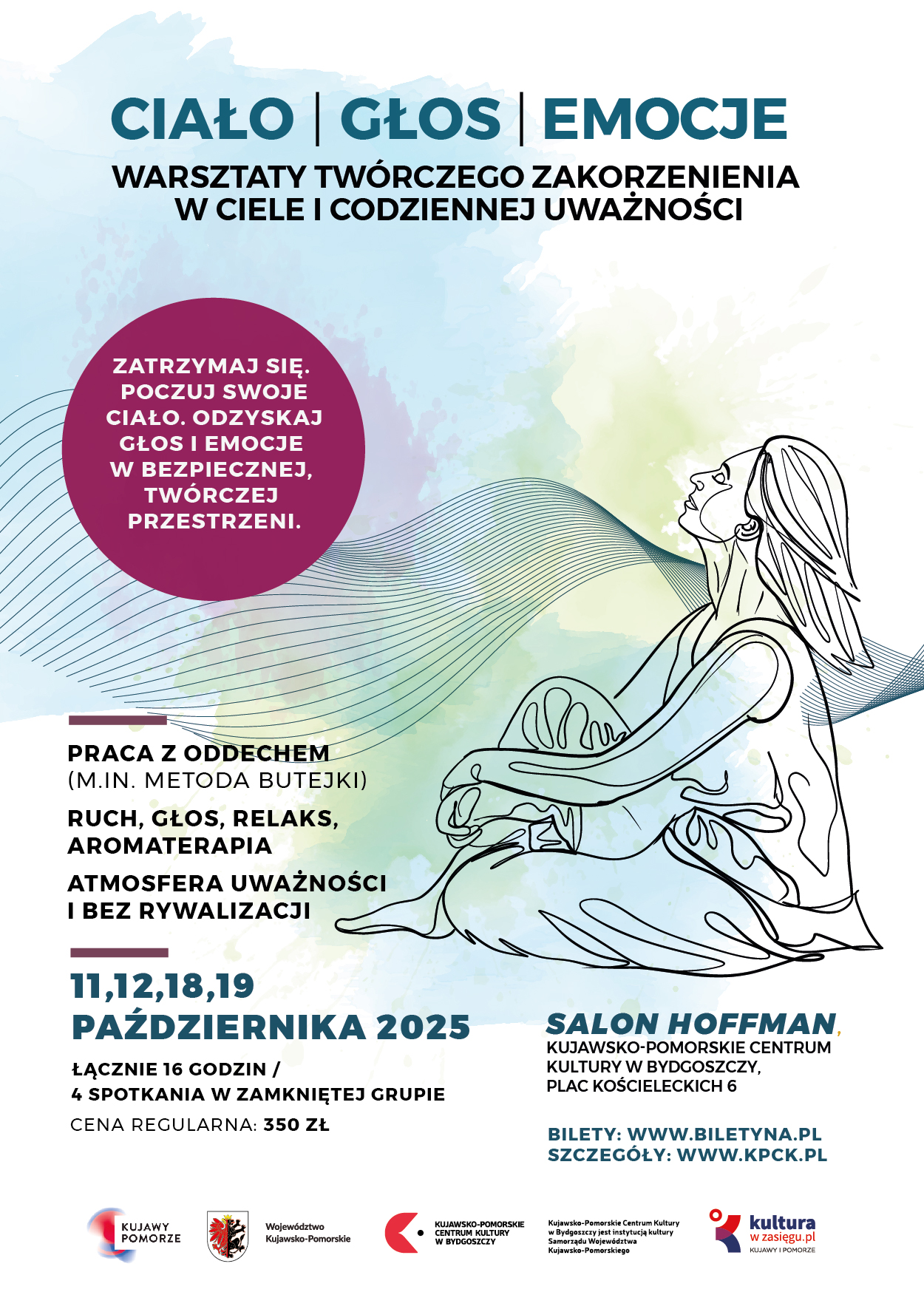 Współczesne tempo życia sprawia, że coraz częściej funkcjonujemy „od szyi w górę” – skupieni na zadaniach, ekranach, głowie. Tymczasem ciało – pierwsze i najbliższe źródło naszej tożsamości, emocji i ekspresji – zostaje zepchnięte na margines. Skutkuje to napięciem, zmęczeniem, trudnościami w komunikacji, a także poczuciem oderwania od siebie i innych. W odpowiedzi na te zjawiska, instytucje kultury coraz częściej stają się przestrzenią nie tylko edukacji i twórczości, ale również regeneracji i głębszego kontaktu ze sobą. Warsztaty „Ciało | Głos | Emocje” powstały jako propozycja rozwojowa, artystyczna i wspólnotowa, osadzona w ramach kultury współczesnej i pracy z ciałem jako źródłem obecności, autentyczności i ekspresji.