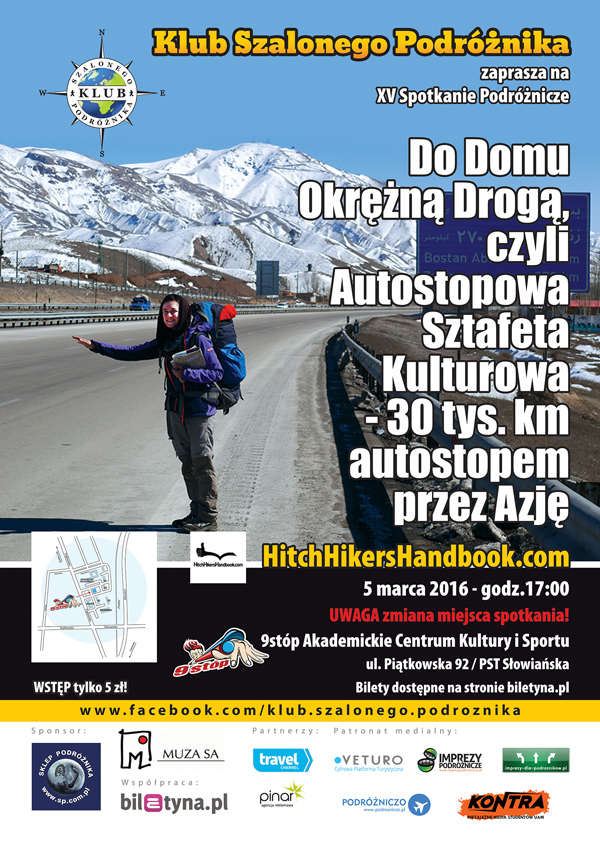 Stowarzyszenie "Klub Szalonego Podróżnika" zaprasza na spotkanie podróżnicze "Do Domu Okrężną Drogą, czyli Autostopowa Sztafeta Kulturowa - 30 tys. km autostopem przez Azję"