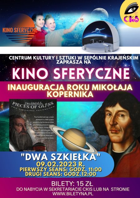Już 9 lutego, w drugi tydzień ferii zimowych zapraszamy dzieci do kina sferycznego, na niezwykły seans filmowy w kopule sferycznej pt: „Dwa szkiełka” inaugurujący rok Mikołaja Kopernika. W trakcie pokazu widzowie będą mogli oglądać trójwymiarową przestrzeń na siedząco lub leżąco. Ta jakże inspirująca podróż w czasie i przestrzeni, odkrywanie tajemnic wszechświata a do tego obracający się obraz stworzą dla uczestników kina sferycznego realistyczne widowisko, które z pewnością dostarczy najmłodszym wielu pozytywnych wrażeń.
