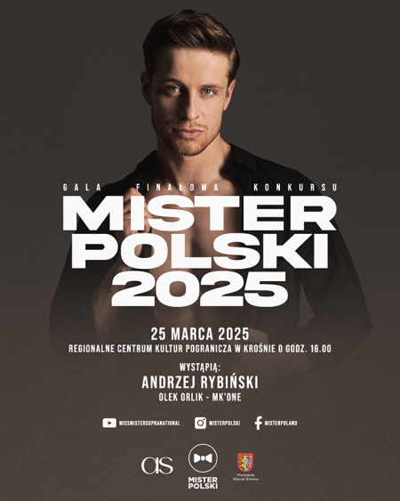 Wyjątkowa Gala finałowa Mister Polski 2025 już 25 marca 2025 w Regionalnym Centrum Kultur Pogranicza w Krośnie. To właśnie do Krosna przyjedzie 12 finalistów, wybranych spośród setek zgłoszeń, którzy zaprezentują się w strojach wieczorowych, kąpielowych i nie tylko. Spośród nich zostanie wybrany ten jeden, najprzystojniejszy Polak i otrzyma tytuł Mistera Polski 2025. Galę uświetnią polscy artyści: Andrzej Rybiński, MK’ONE oraz Olek Orlik. Rozpoczęcie tego Ogólnopolskiego wydarzenia rozpocznie się o godz. 16.00 i zgromadzi wiele znanych osobistości ze świata show biznesu. Organizatorem konkursu jest agencja AS MANAGEMENT.