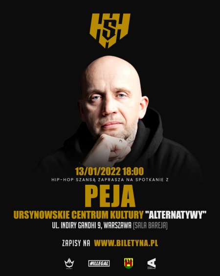 Cieszący się niesłabnącą popularnością cykl spotkań, podczas których rozmawiamy z twórcami kultury hip-hopu: raperami, didżejami, producentami. Tym razem naszym gościem będzie Peja (Ryszard Waldemar Andrzejewsk) – polski raper, autor tekstów i producent muzyczny, a także przedsiębiorca.