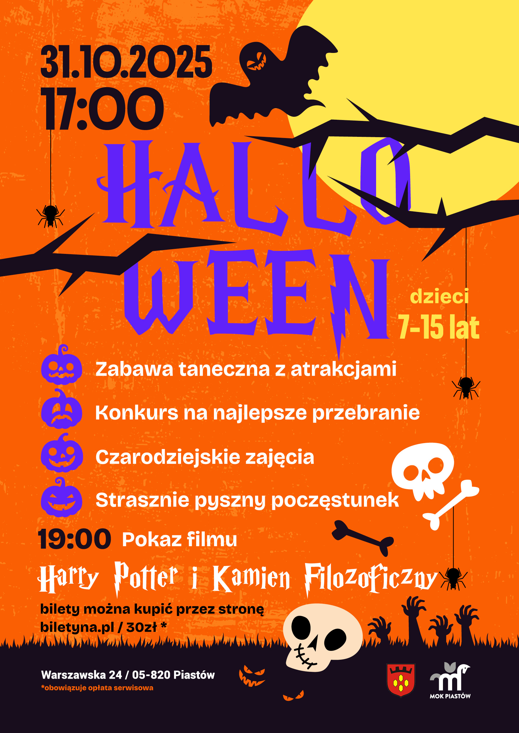 Zapraszamy wszystkie dzieci w wieku 7–15 lat na wieczór pełen czarów, duchów i halloweenowych niespodzianek!
