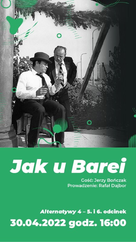 Piąte spotkanie poświęcone Stanisławowi Barei i jego kultowemu serialowi „Alternatywy 4”. Rafał Dajbor, autor książki „Jak u Barei, czyli kto to powiedział”, poprowadzi spotkanie z aktorem Jerzym Bończakiem – serialowym konstruktorem Mancem. Zaraz po rozmowie pokażemy piąty i szósty odcinek serialu, który rozsławił Ursynów.