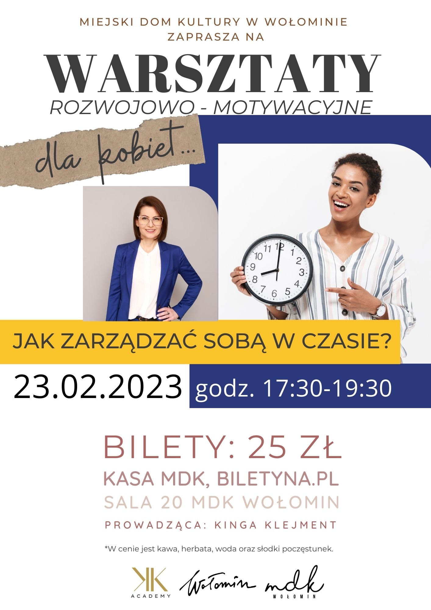 Zapraszamy na warsztaty ROZWOJOWO - MOTYWACYJNE dla KOBIET. Warsztaty odbędą się 23 lutego 2023 roku w Miejskim Domu Kultury w Wołominie.