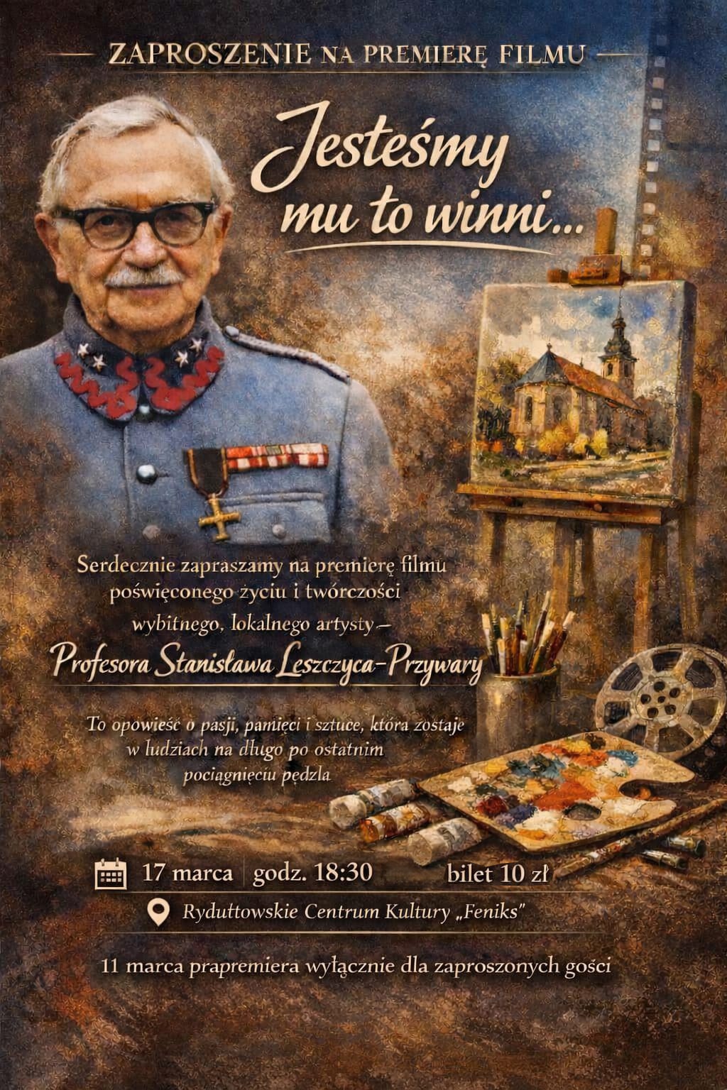 Film ten powstał z potrzeby serca, by ocalić od zapomnienia postać niezwykłego mieszkańca Rydułtów i przekazać jego testament kolejnym pokoleniom. To poruszająca opowieść o człowieku sprawiedliwym, który z różańcem w ręku i pędzlem w dłoni zwyciężał zło dobrem. To portret bohatera, który swoje miejsce na ziemi odnalazł właśnie tutaj, ucząc nas do dziś, jak żyć z podniesionym czołem i nieugiętym kręgosłupem moralnym.