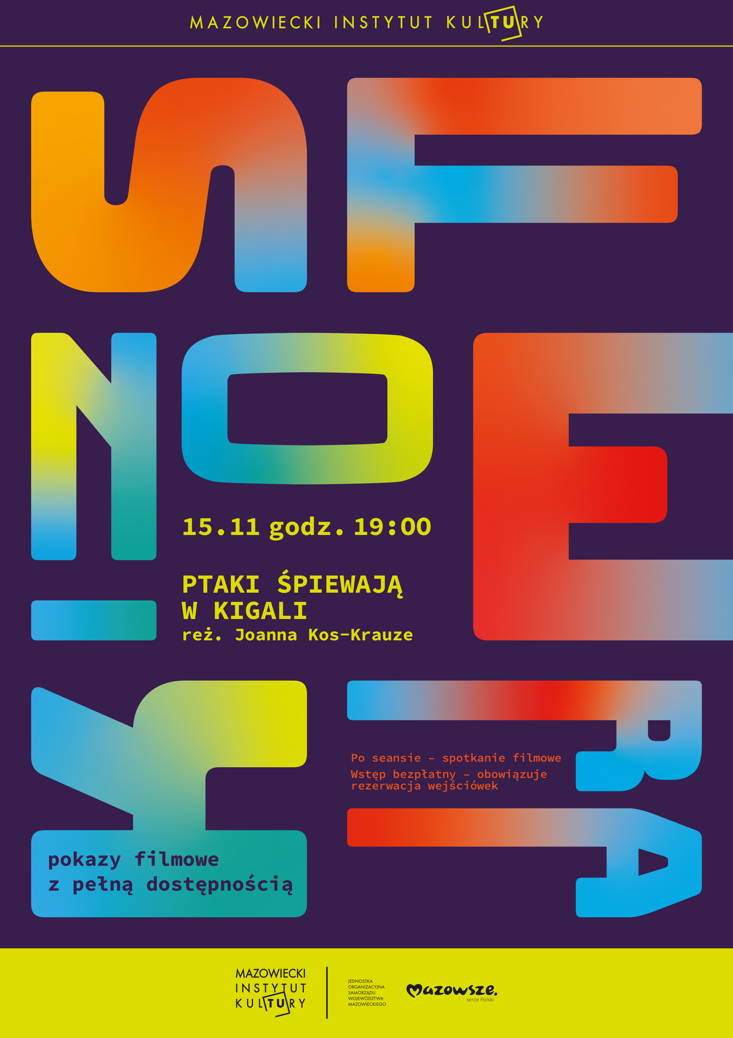 15 listopada zapraszamy Państwa na kolejne spotkania w ramach cyklu Kinosfera. Tym razem przygotowaliśmy film Ptaki śpiewaja w Kigali w reżyserii Joanny Kos-Krauze i Krzysztofa Krauzego. Seans zaczniemy dykusją z udziałem reżyserki oraz Aleksandry Chrzanowskiej.