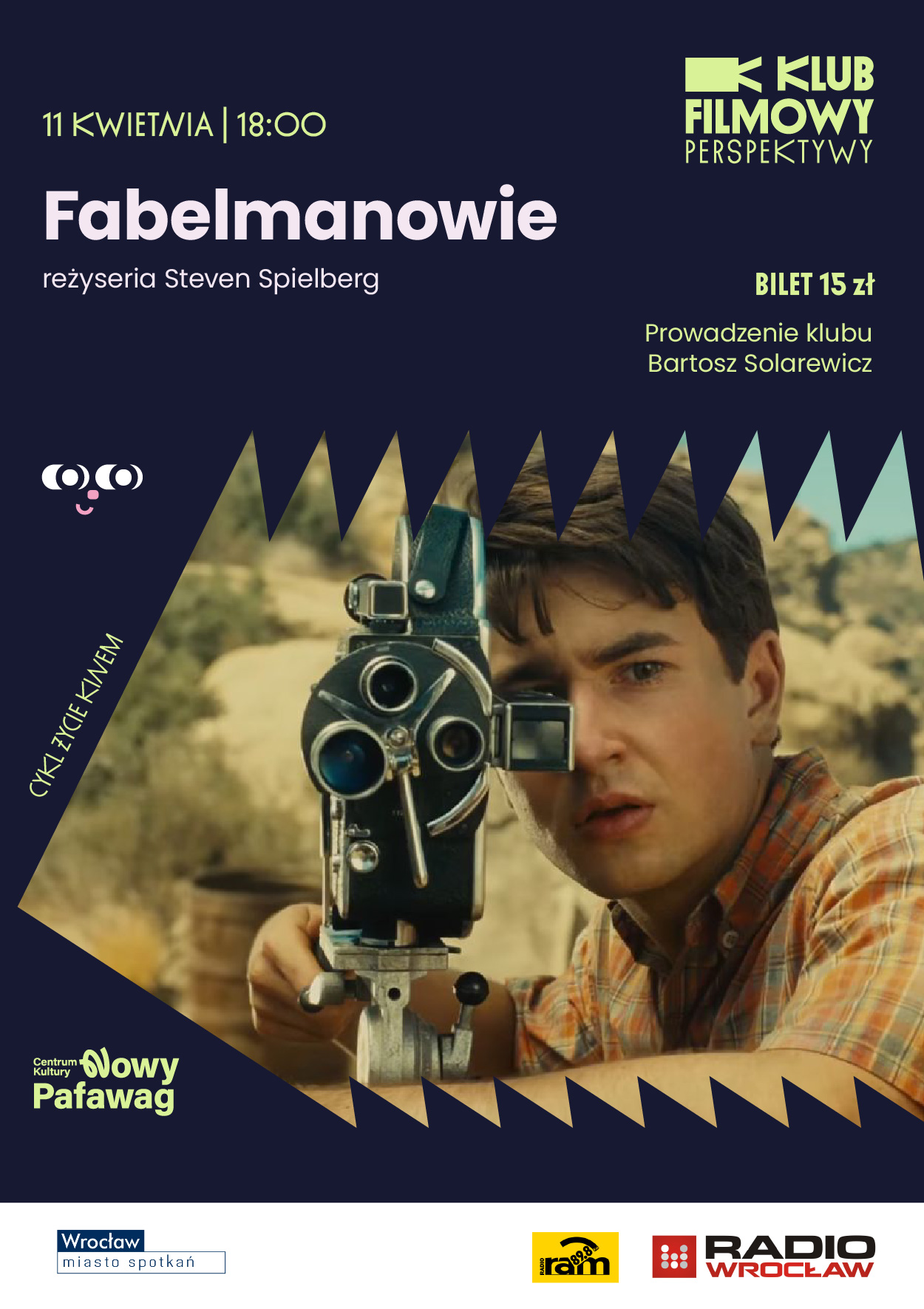 Moderatorem klubu jest Bartosz Solarewicz – animator kultury filmowej, ekspert od komunikacji, tłumacz, z wykształcenia psycholog. Wieloletni współpracownik festiwali filmowych (od 2010 do dziś Festiwalu Camerimage, wcześniej także: Nowych Horyzontów, Watch Docs, Brave Festival, Docs Against Gravity, Letniej Akademii Filmowej) oraz kin i centrów kultury we Wrocławiu i w Oławie. Prowadzi i tłumaczy spotkania z gośćmi, konferencje prasowe, prelekcje i dyskusje.