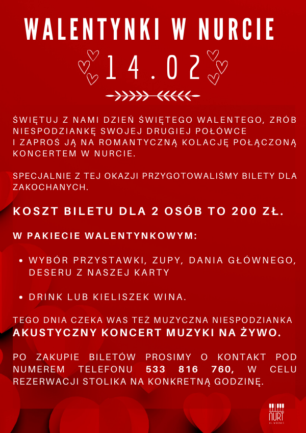 Po zakupie biletów prosimy o kontakt pod numerem telefonu 533 816 760, w celu rezerwacji stolika na konkretną godzinę.