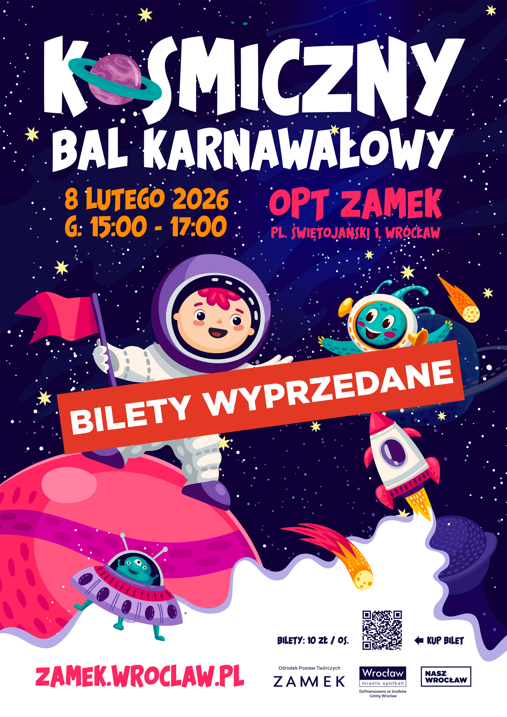 Przygotujcie skafandry, naoliwcie antenki i odliczajcie do startu! Już 8 lutego o godzinie 15:00 OPT Zamek zamieni się w międzygalaktyczną stację pełną radosnej energii. Zapraszamy wszystkie dzieci na niezapomniany Kosmiczny Bal Karnawałowy!
