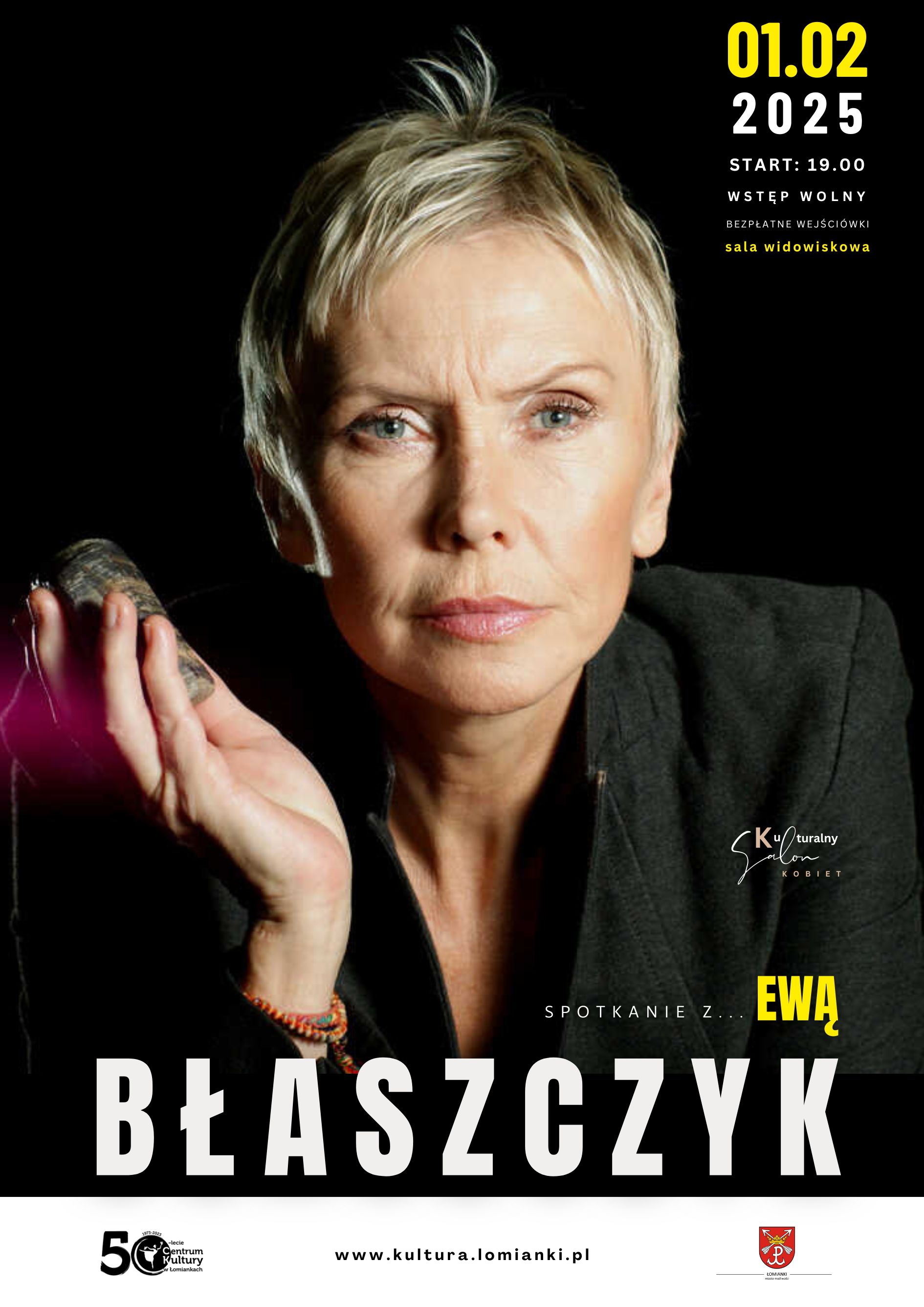 W sobotę 1 lutego o godzinie 19.00 naszym gościem będzie niepowtarzalna Ewa Błaszczyk – aktorka, wokalistka, a także jedna z najbardziej cenionych polskich działaczek społecznych. W kameralnej atmosferze, przy kawie i słodkim poczęstunku, dowiemy się o jej drodze artystycznej, pracy scenicznej i filmowej, a także o wyzwaniach, które podjęła, angażując się w pomoc osobom w śpiączce poprzez działalność Fundacji Akogo? i Kliniki „Budzik”.