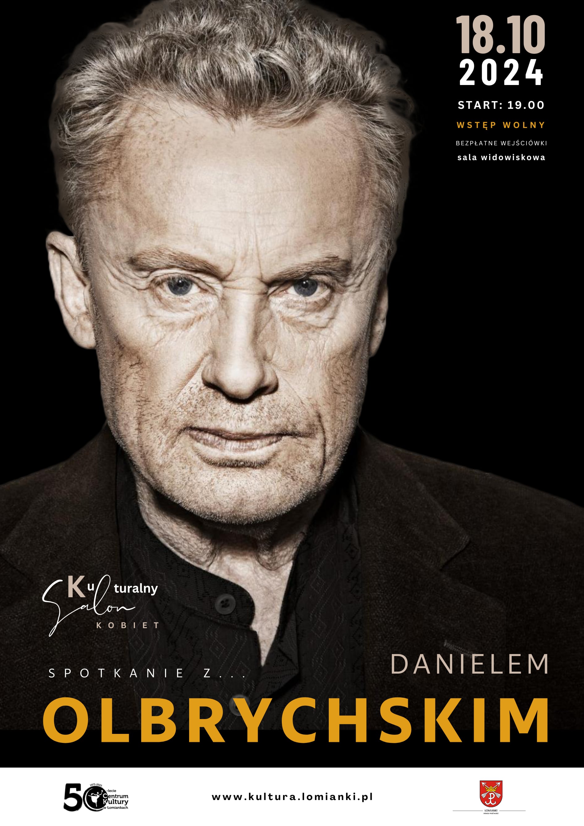 W kolejnym spotkaniu z cyklu “Kulturalny Salon Kobiet” dedykowanym miłośnikom kultury, sztuki, filmu, muzyki, literatury, ale także wszystkim sympatykom naszego Centrum Kultury w Łomiankach, którzy w swojej ciekawości świata chcą rozmawiać, poznawać, kolekcjonować niezapomniane momenty porozmawiamy z uznawanym za jednego z najwybitniejszych aktorów filmowych i teatralnych swojego pokolenia w Europie, który zagrał w blisko 180 filmach kinowych i telewizyjnych: Danielem Olbrychskim. Pięć filmów z jego udziałem było nominowanych do Oscara, z których dwa (“Blaszany bębenek” i “Przekątna gońca”) otrzymały Oscara. Pracował największymi reżyserami polskimi: Andrzejem Wajdą, Jerzym Hoffmanem, Krzysztofem Zanussim, Krzysztofem Kieślowskim, a także zagranicznymi: Claude Lelouchem, Nikitą Michałkowem, Philipem Kaufmanem, Volkerem Schlöndorffem, Miklósem Jancsó, Margarettą von Trotta, Josephem Loseyem i innymi. Podczas spotkania porozmawiamy o kultowej roli Jędrusia, niesamowitej sprawności fizycznej, zdolnościach komediowych, współpracy z Angeliną Jolie i wielu innych historiach, choć czasu z pewnością będzie zbyt mało, bo postać to wybitna i nietuzinkowa.