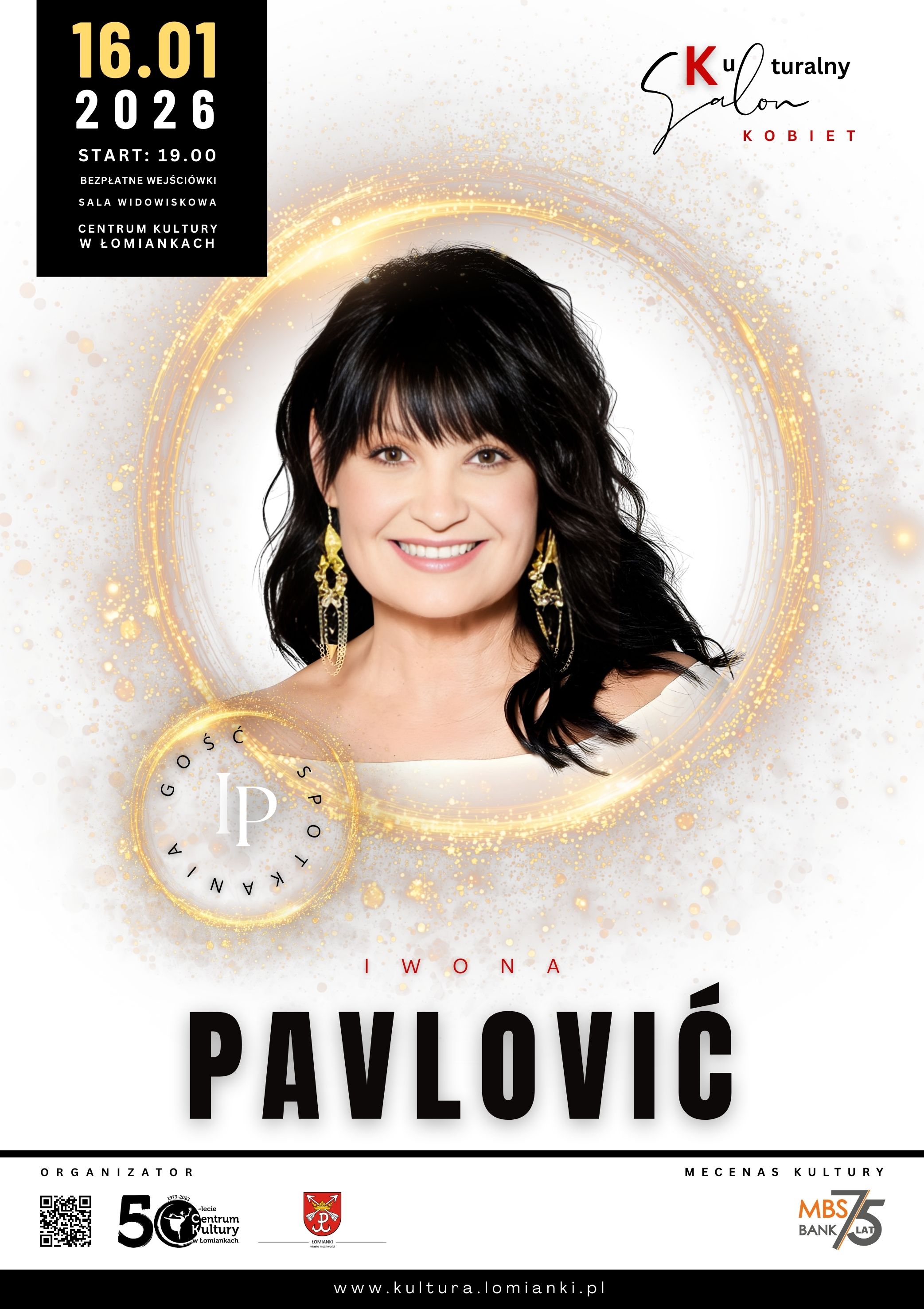 Zapraszamy na pierwsze spotkanie Kulturalnego Salonu Kobiet w 2026 roku. Naszym gościem będzie Iwona Pavlović – ikona tańca, telewizji i jedna z najmocniejszych osobowości polskiego show-biznesu.