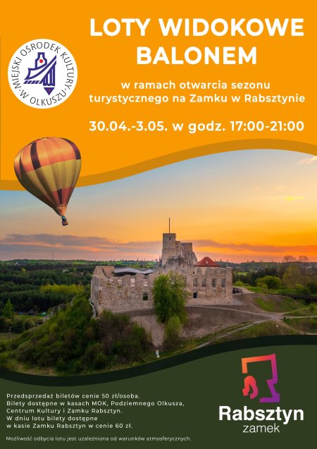Loty widokowe balonem w ramach otwarcia sezonu turystycznego na Zamku w Rabsztynie.