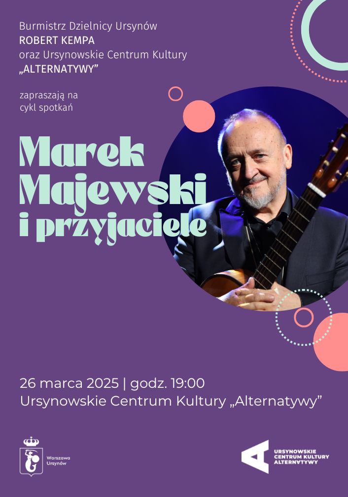 Kolejny koncert w ramach cyklu spotkań z Markiem Majewskim – satyrykiem, kompozytorem, śpiewającym poetą, scenarzystą i reżyserem licznych programów estradowych, telewizyjnych oraz radiowych.